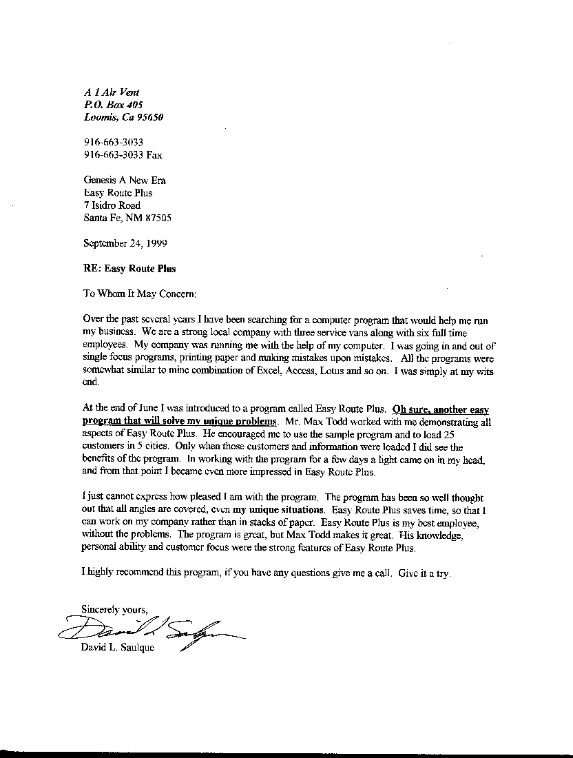 What do other users say about EasyRoute Plus? Click on a truck to see an actual testimonial letter, then use your browser's BACK button to return.